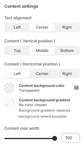 Content Settings: Adjust the alignment and position of your content both horizontally and vertically to achieve the desired layout.