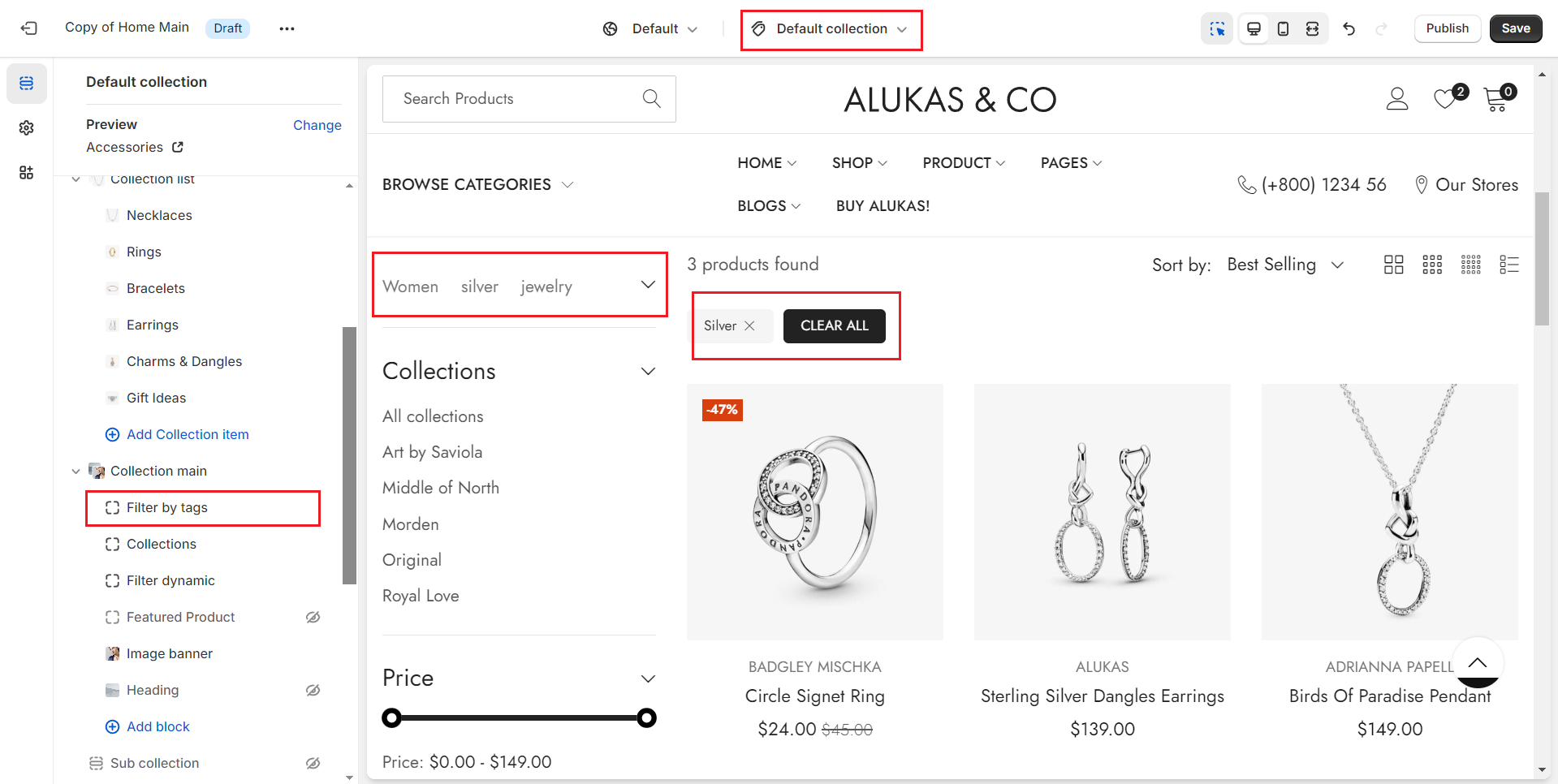 7. Add block **Filter dynamic** in **Collection main** section