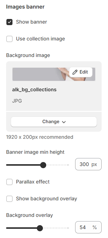 **Show parallax banner:** This option will help your image show the **Parallax effect** for the Collection Heading.
