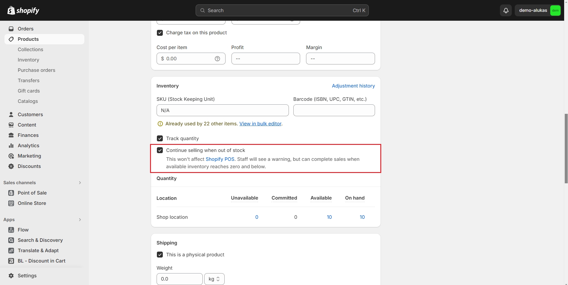 Scroll down to Inventory section, tick to "Continue selling when out of stock" checkbox