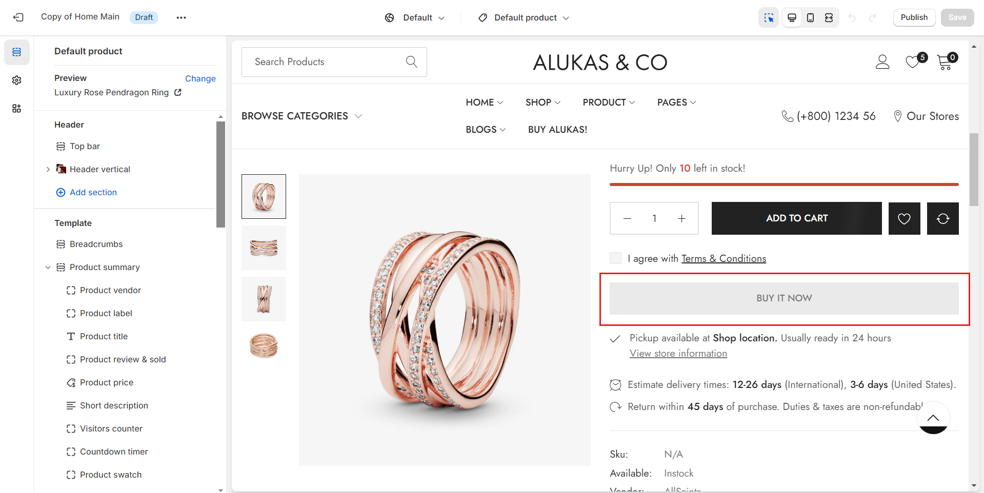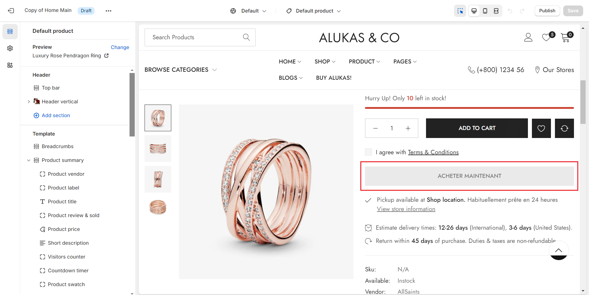 Once you've completed the setup, the "**Buy it now**" button will be translated into your chosen language, ensuring that your site communicates effectively with your target audience in their native language, enhancing the shopping experience.