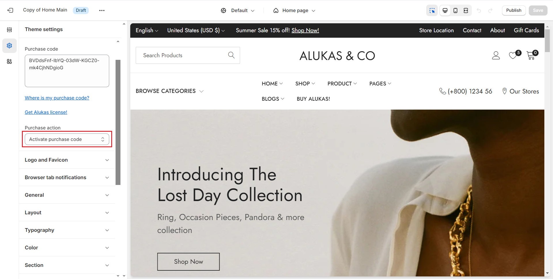 7. Use your purchase code and activate **Alukas** theme for other domain