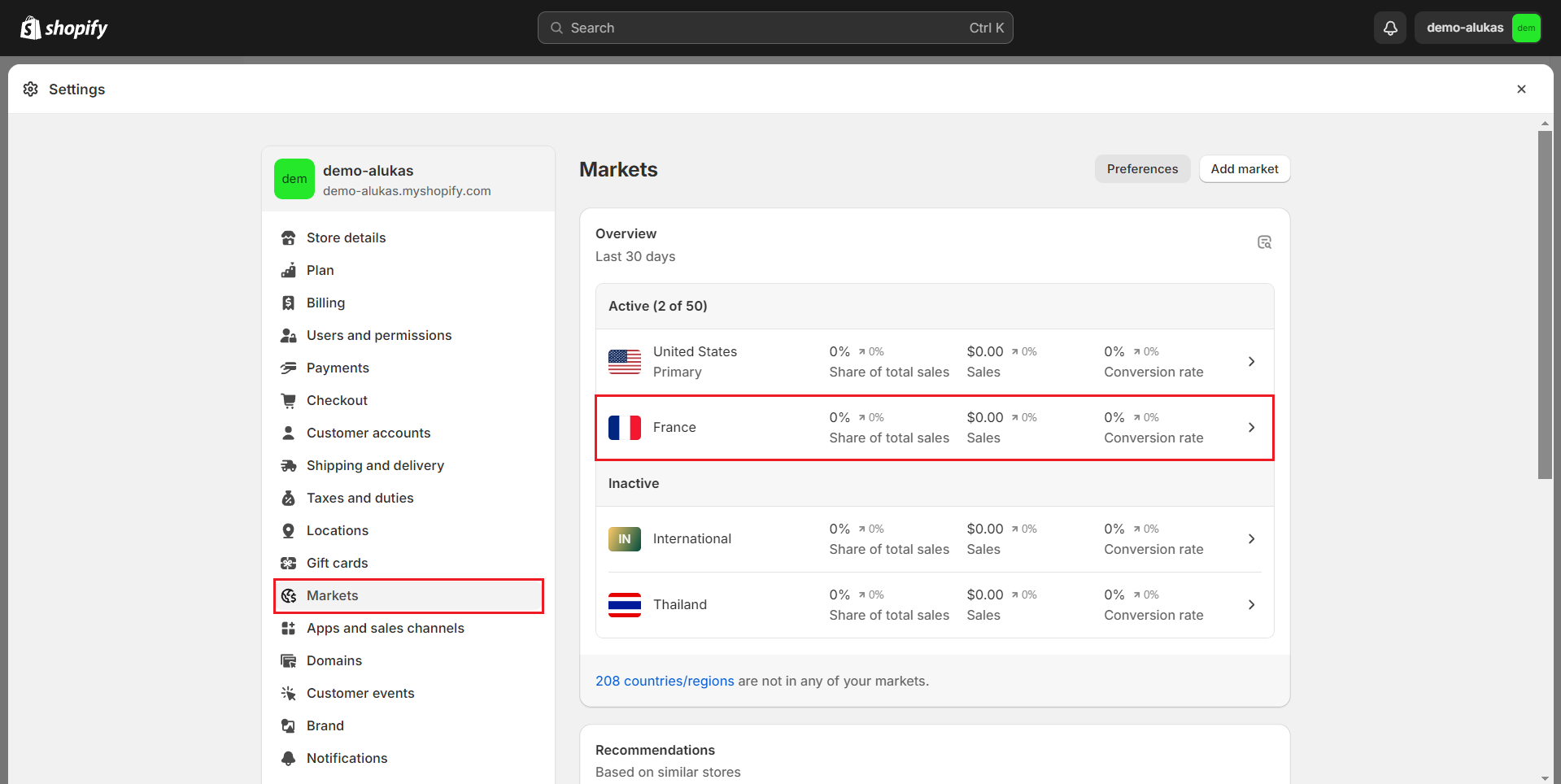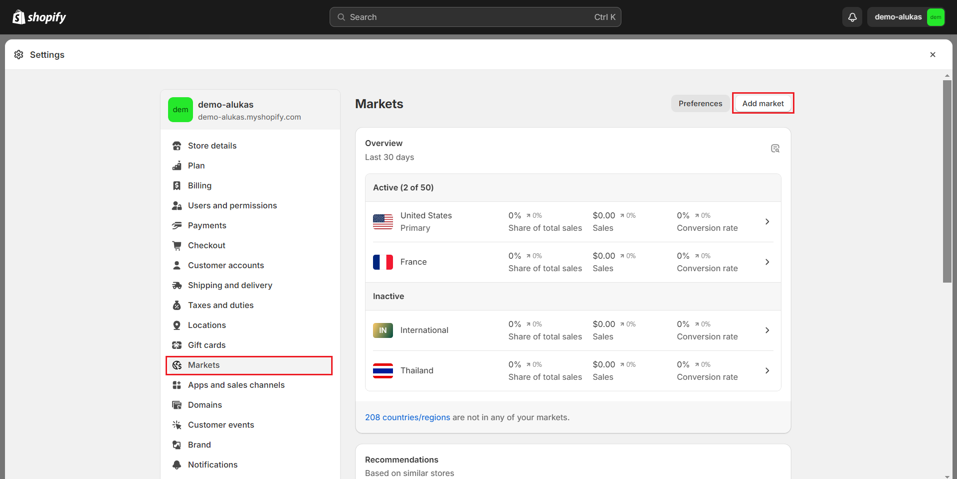 * Go to **Settings -> Market -> Add market** to add a new Market