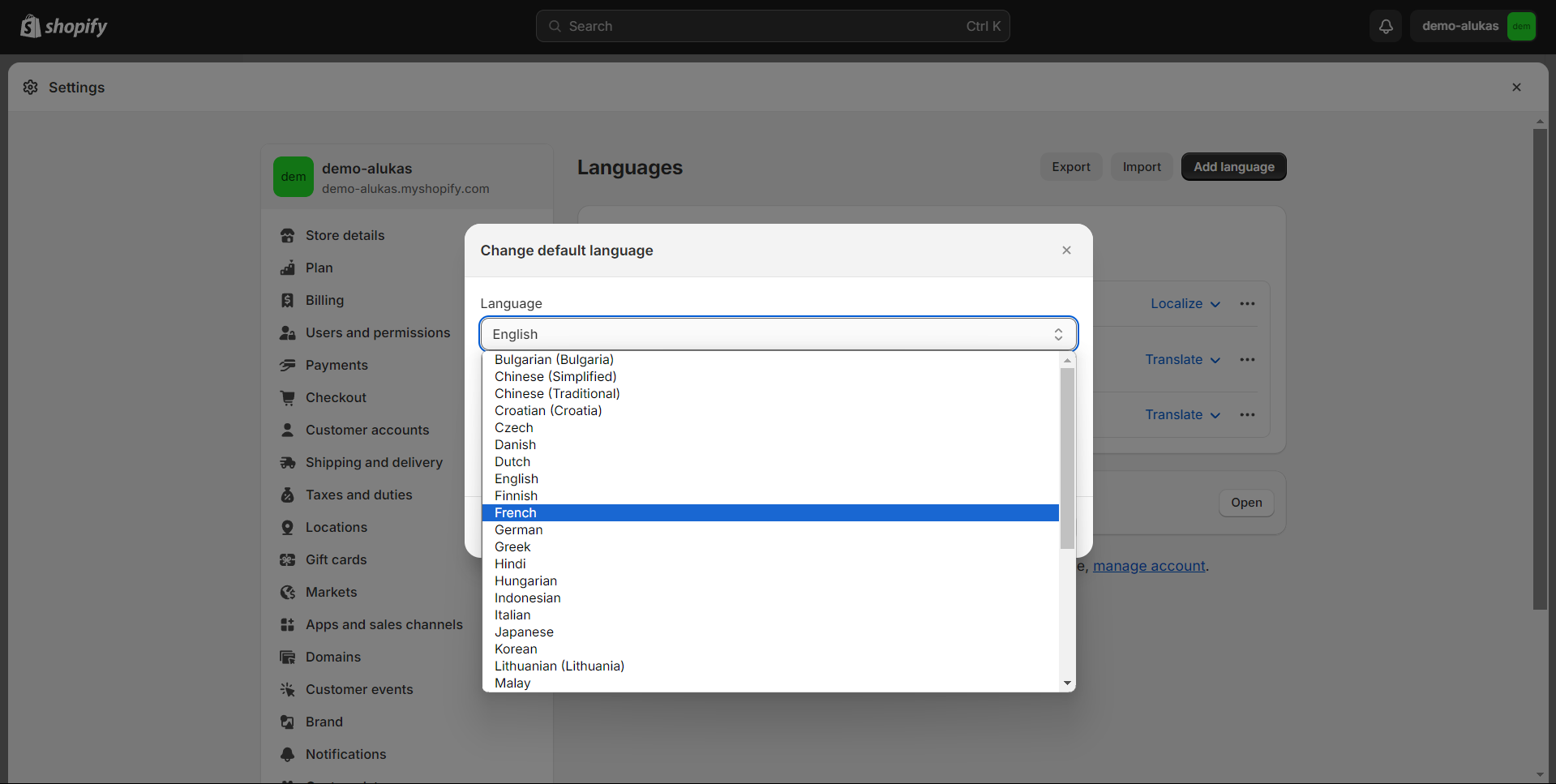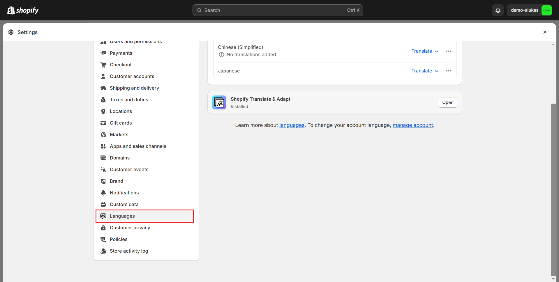 * A theme that's compatible with selling in multi-languages. (Alukas theme is compatible with selling in multiple languages.)