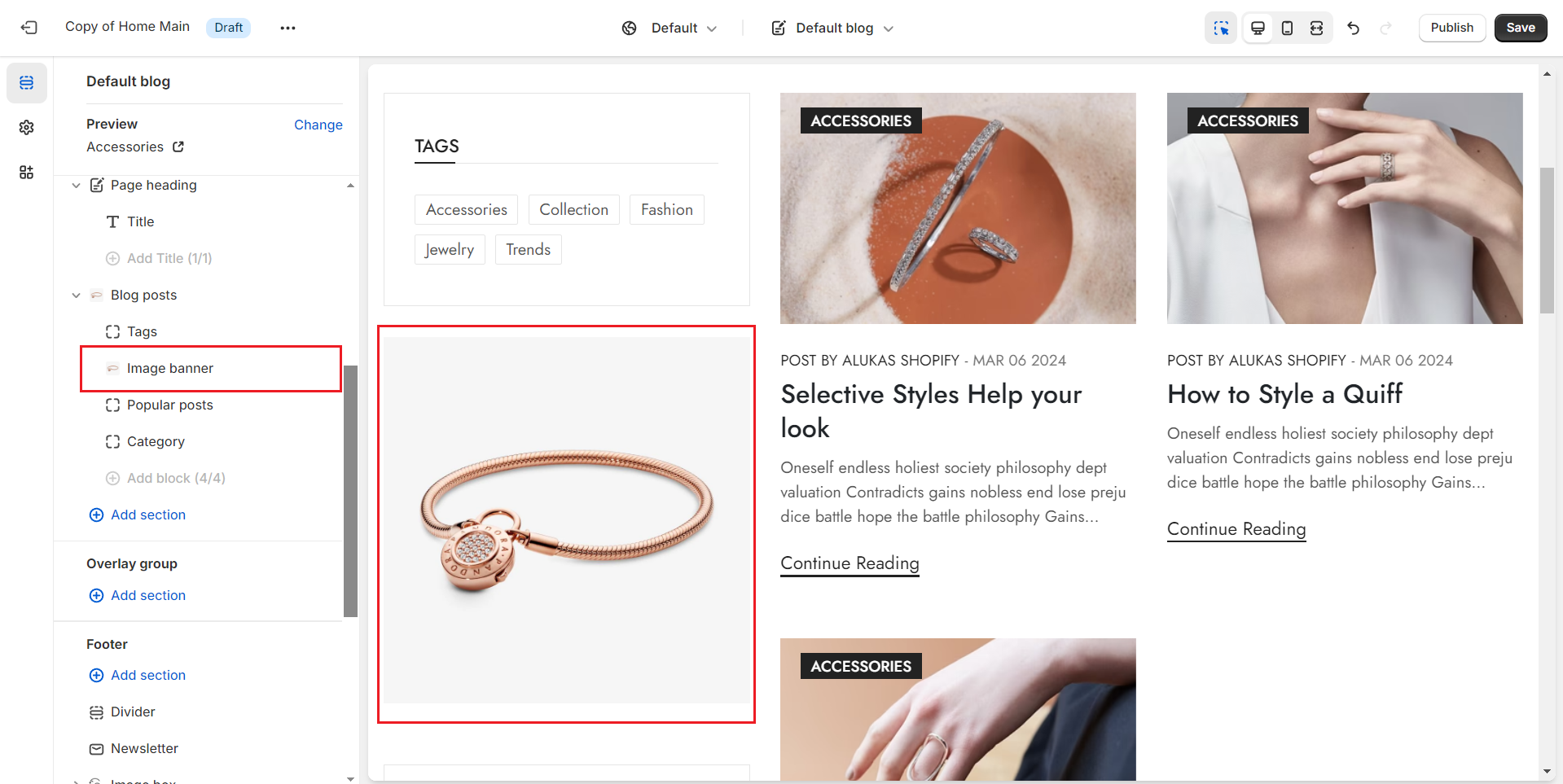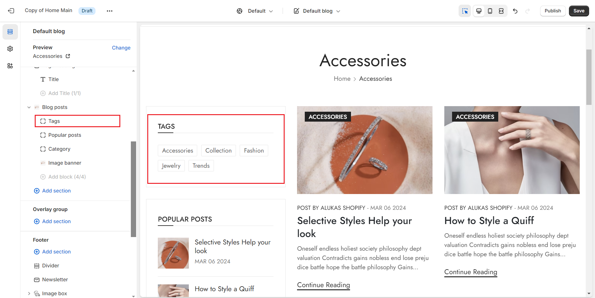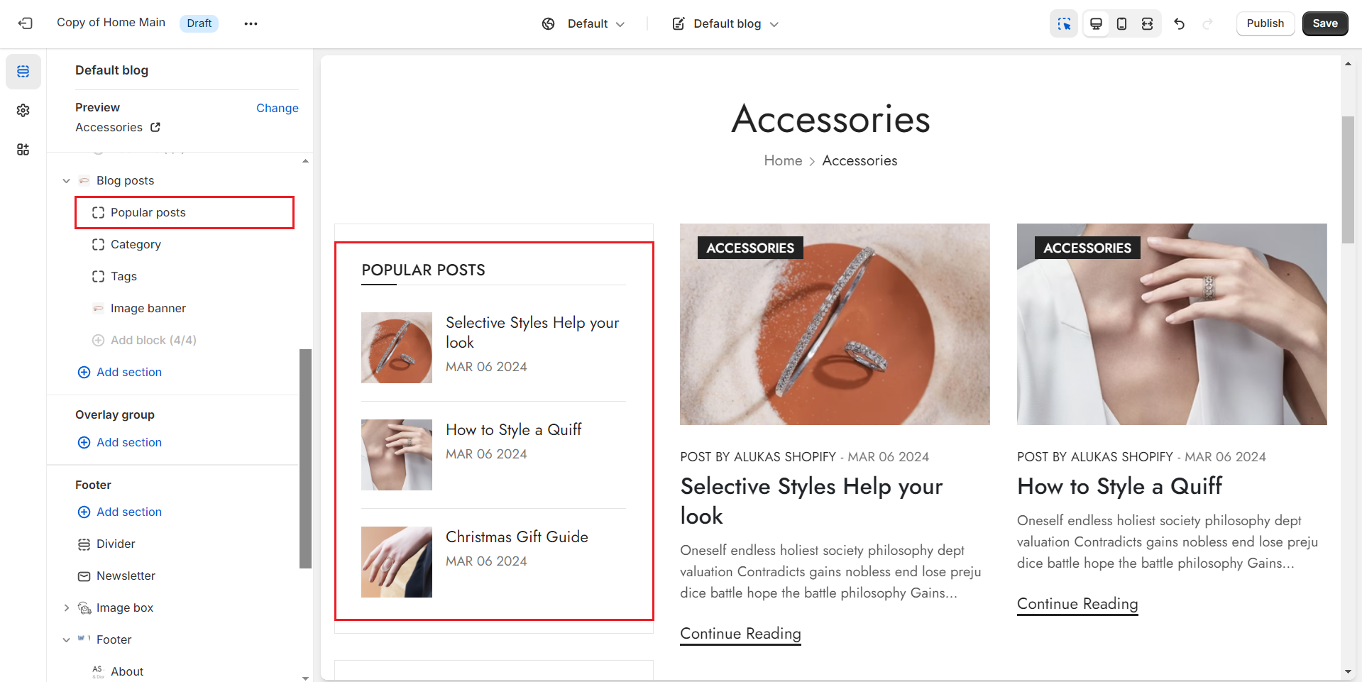 **Pagination:** Choose the style of pagination from default, load more, or infinite scrolling to enhance navigation through your content.