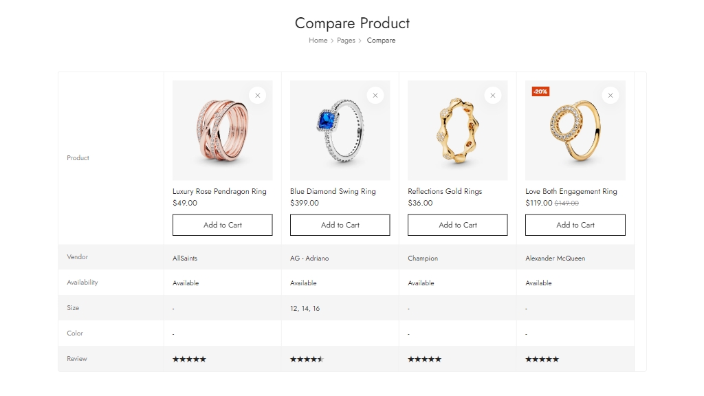 The customer can easily compare the products, check the complete specification and buy the product as her/his requirement.