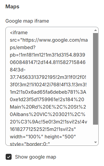 **Iframe:** This refers to the embed code you can obtain from Google Maps, allowing you to integrate maps directly into your website or digital content for easy location referencing.