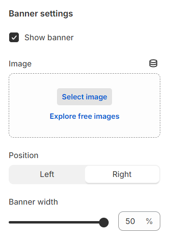 **Position:** Set the banner's position to either the left or right side of the page, allowing for strategic placement in relation to your content.
