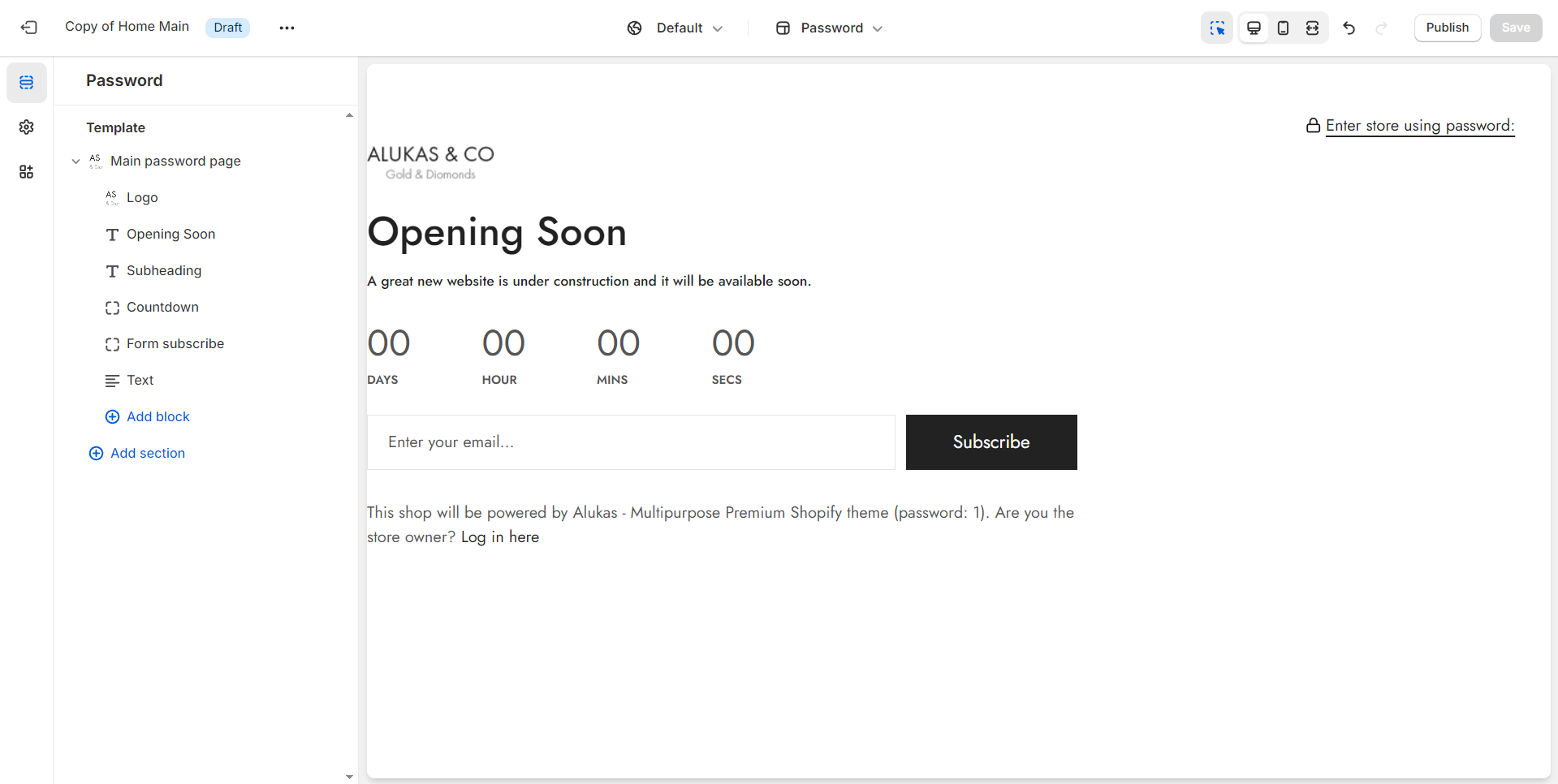 1. In the theme editor **(Customize)**, open the template selector