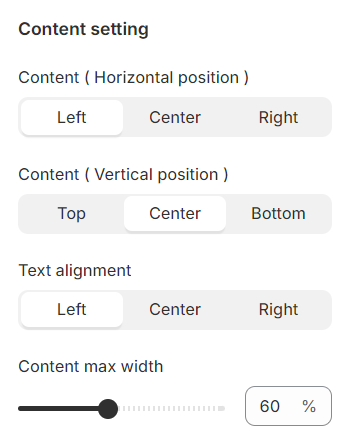 **Content Position:** Adjust the placement of your content either vertically or horizontally to best fit the design and flow of your page.