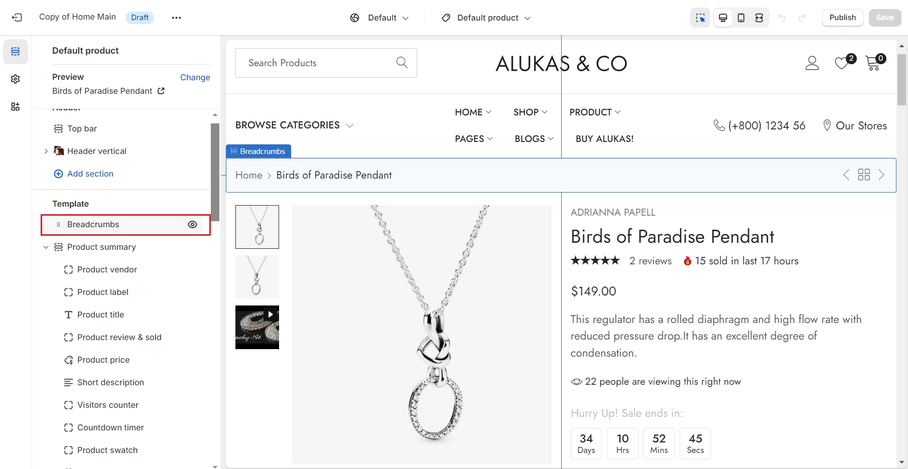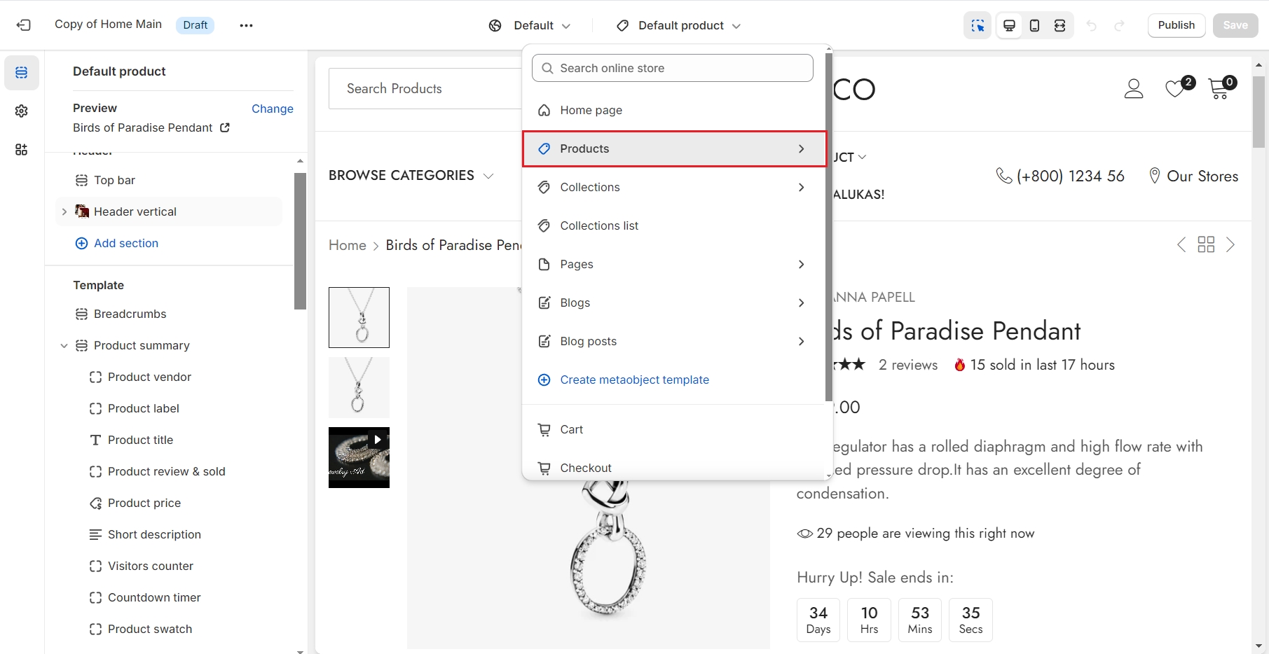 Show next prev product: Buttons enable customer navigation between products, facilitating convenient exploration of your offerings.