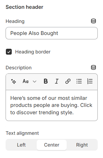 ## Section settings