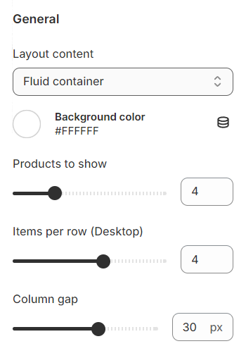 Determine the total number of products to showcase, configure how many products should appear in each row, and adjust the spacing between adjacent products for a neat and organized presentation.