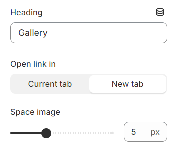 **Open Link In:** Choose whether links from the gallery open in the current tab or a new tab, providing control over the user's navigation experience.