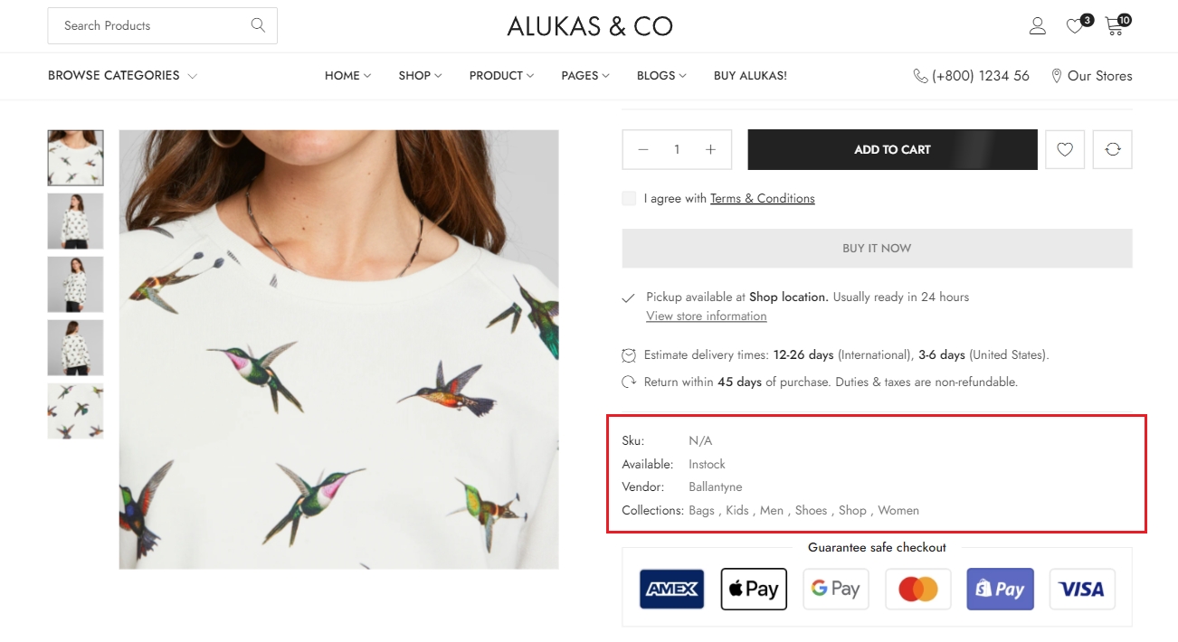 Product meta: This block allows you to add some Product meta options on the Product Page.