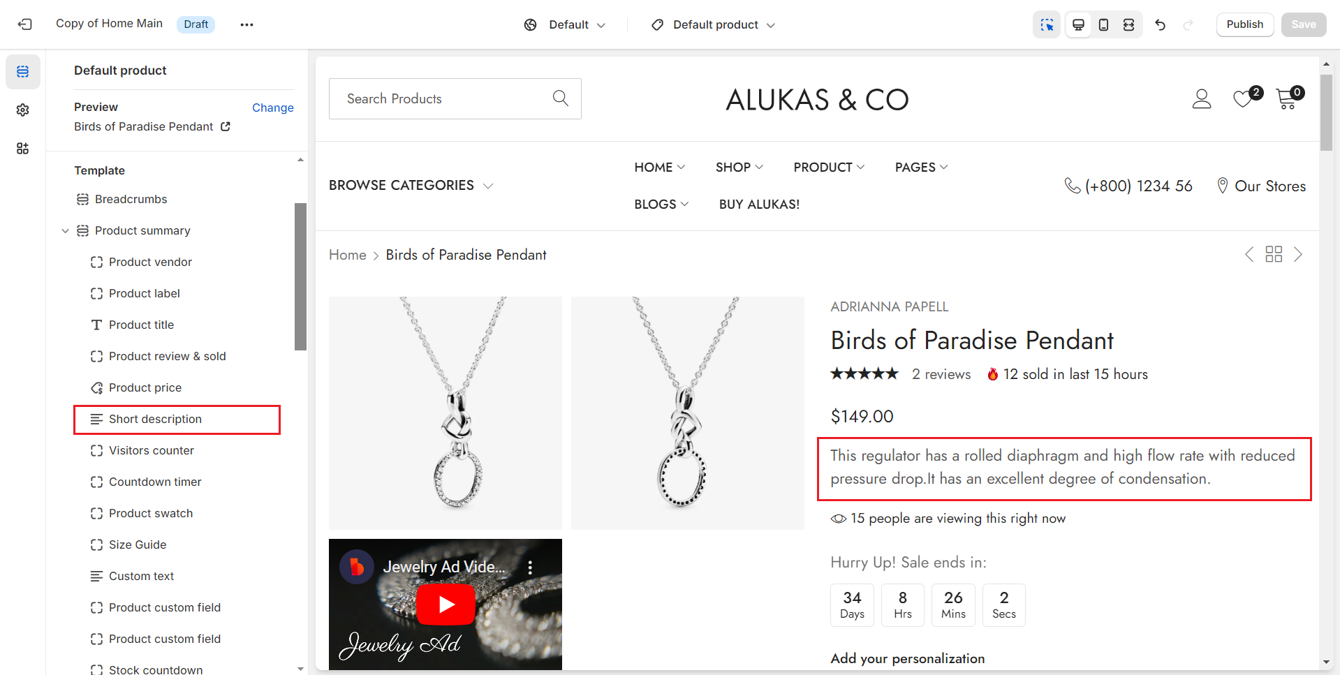 This description can be configured using a metafield. To know how to set up a short description metafield, please follow [this link](https://blueskytechco.gitbook.io/alukas-shopify/get-started/import-data/create-required-metafield#id-2.-short-description) for detailed instructions.