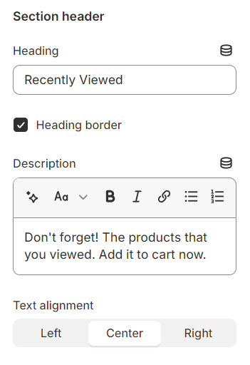 Use the provided text fields to add a suitable heading/subheading/description. Leave any of them blank if you do not want to display them.
