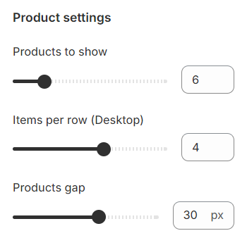 Determine the total number of products to showcase, configure how many products should appear in each row, and adjust the spacing between adjacent products for a neat and organized presentation.