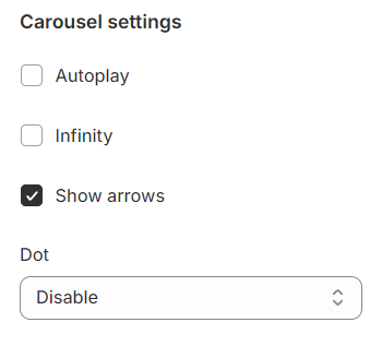 **Show Arrows:** Activate arrows for users to manually swipe through carousel items and dots for a visual indicator of their position within the carousel.