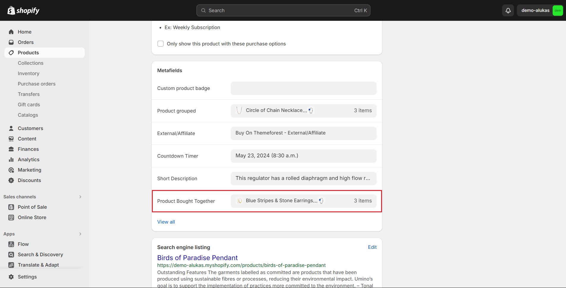 2. Scroll down to **Metafields** and click to Product Bought Together