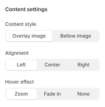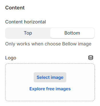 Content horizontal: When the Content Style is set to Below Image, you have the option to position the content either at the top or the bottom.