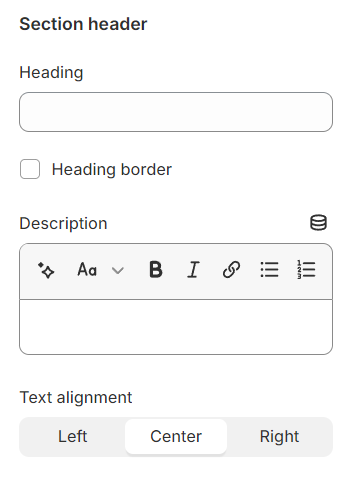 Use the provided text fields to add a suitable heading/subheading/description. Leave any of them blank if you do not want to display them.