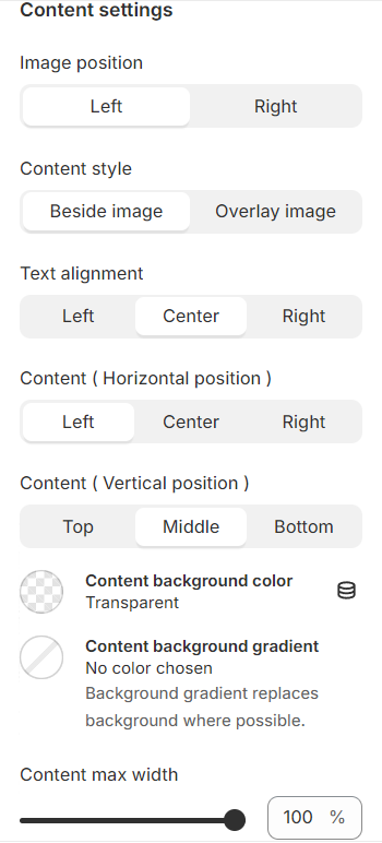 **Image Position:** Configure the image to appear either to the left or right of the content.&#x20;