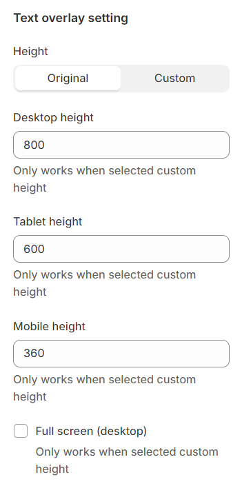 Content has default height with **Original** setting. Switch to **Custom** setting in case you want to set it up on your own.