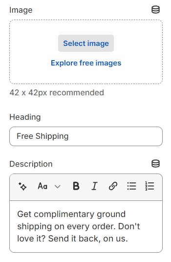 This section helps you add Icon, Header, Subheader, and Text in many boxes. You can use this section for many different purposes, especially for a more flexible Free Shipping section. Let's stick to this article to figure it out.