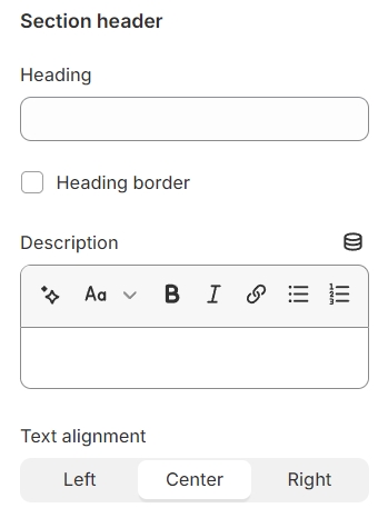 Use the provided text fields to add a suitable heading/subheading/description. Leave any of them blank if you do not want to display them.