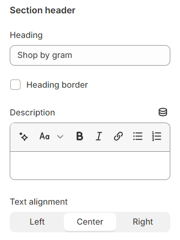 Use the provided text fields to add a suitable heading/subheading/description. Leave any of them blank if you do not want to display them.
