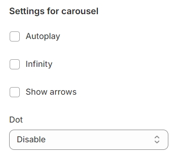 Autoplay / Infinite Play: Enable this setting for the carousel to automatically scroll through items indefinitely, providing a seamless browsing experience.