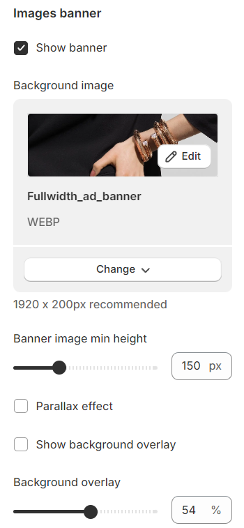 Once the **Show Banner** option is activated, you have the flexibility to select a Background Image for display. Additionally, you can define a minimum height for it.&#x20;