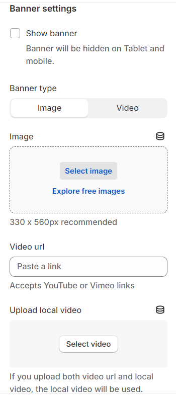 **Show Banner Option:** Activating this will display the banner on desktop devices while ensuring it remains hidden on tablets and mobile for a tailored viewing experience.