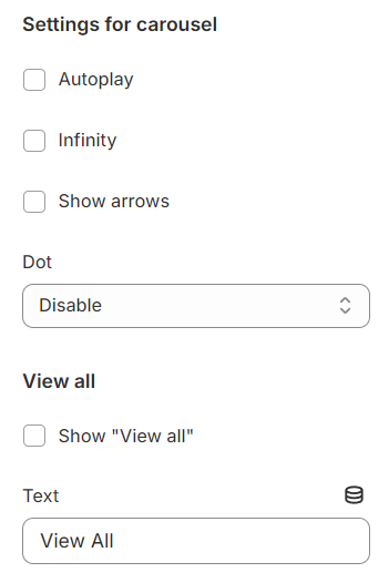**Autoplay / Infinite Play:** Enable this setting for the carousel to automatically scroll through items indefinitely, providing a seamless browsing experience.