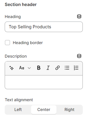Use the provided text fields to add a suitable heading/subheading/description. Leave any of them blank if you do not want to display them.