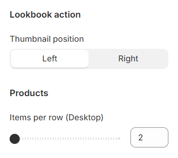 **Thumbnail position**: set the position of the thumbnail image relative to lookbook products