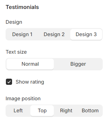 **Image Position:** Customize the placement of images in relation to the text content to achieve a balanced and engaging testimonial display.