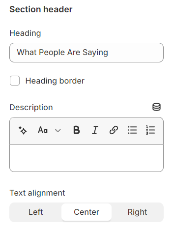 ## Section settings <a href="#testimonials" id="testimonials"></a>