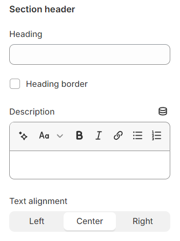Use the provided text fields to add a suitable heading/subheading/description. Leave any of them blank if you do not want to display them.