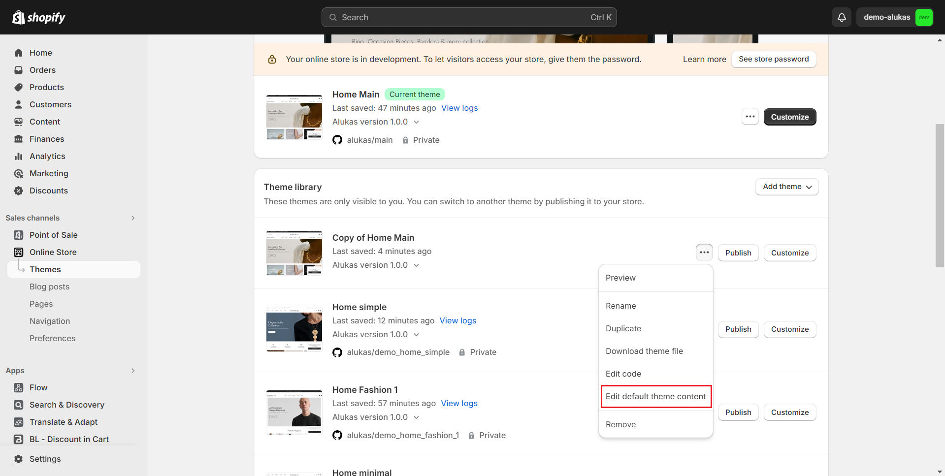 1. From your admin, go to **Online Stores -> Themes**