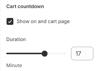 5. **Cart countdown:** Tick the checkbox "**Show on and cart page**" to enable cart countdown in cart dawn.