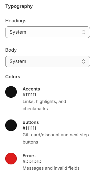 Use this part to change fonts and colors that match the store' aesthetic look.