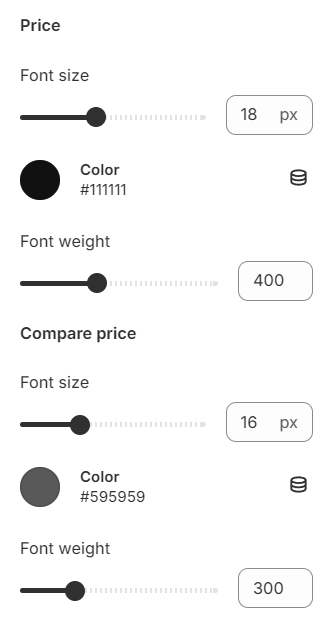 Enhance the display of your product pricing and compare prices with comprehensive settings that include font size, text color, and font weight