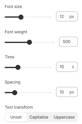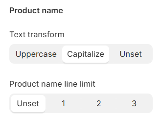 With **Text transform**, you can choose to display product names in uppercase, capitalize each word, or leave them as originally entered (unset).&#x20;