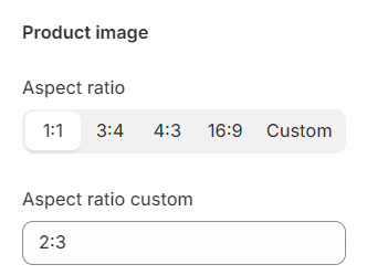 Product images ratio can be adjusted with default values or custom value defined by yourself, which is only available when **Aspect ratio** is set to **Custom**.&#x20;