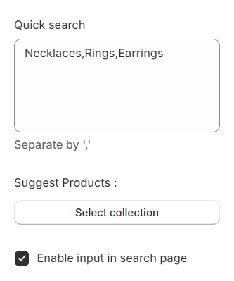 Quick search: You can set some predefined popular search queries to suggest the search result