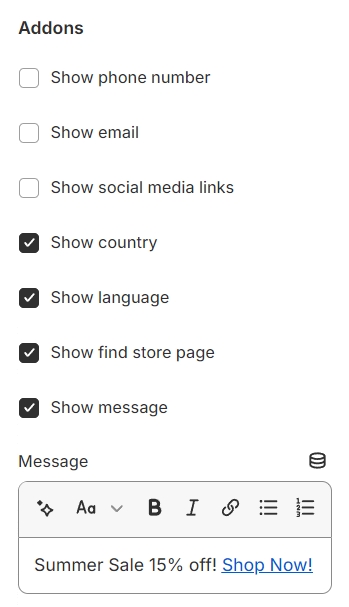 You have the option to customize the top bar of your website by selecting specific features to display: