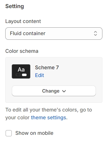 Layout: You can choose among Fluid Container, Stretch width, Full width for the layout or just leave it with the default layout.