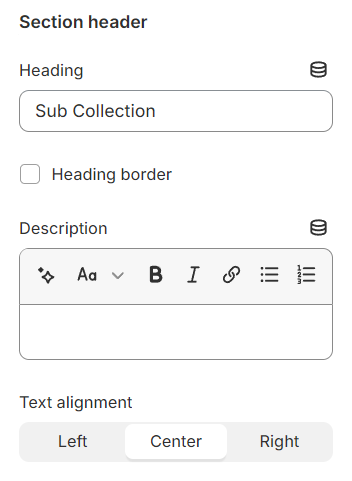 Use the provided text fields to add a suitable heading/subheading/description. Leave any of them blank if you do not want to display them.